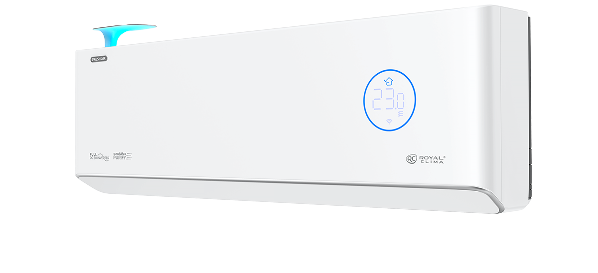 Сплит-системы с притоком свежего воздуха ROYAl FRESH позволяют не только охлаждать и нагревать рециркулирующий в помещении воздух, но и насыщать пространство приточным воздухом с улицы, предварительно производя его очистку благодаря высокоэффективному HEPA фильтру. Производительность устройства в режиме приточной вентиляции составляет 60 м3/ч.