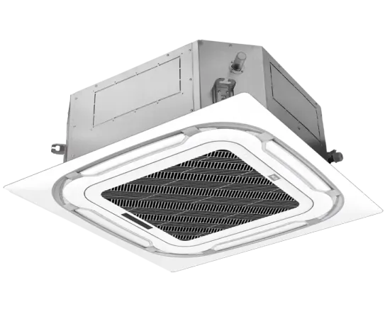 Инверторные сплит-системы кассетного типа представлены компактными и полноразмерными моделями в зависимости от производительности. Благодаря панели с круговой раздачей обработанный воздух равномерно распределяется по помещению на расстояние до 4 м. Объем дренажного поддона увеличен на 30%. Изготовленный из прочного пластика толщиной 1,5 мм, он полностью исключает возможность протечек. В комплект поставки также входят дренажная помпа с высотой подъема конденсата до 1200 мм, воздушный фильтр и беспроводной пульт с держателем. Оборудование укомплектовано разъемом под wi-fi модуль. При желании можно организовать подмес свежего воздуха.