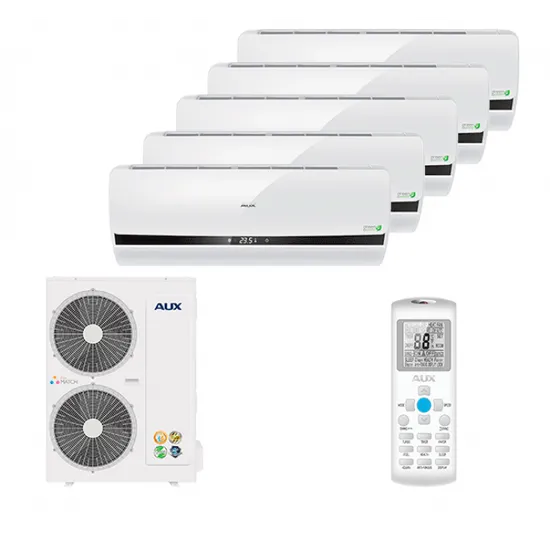 Мульти сплит-система AUX на 5 комнат, площадью до 100 кв.м, серии Free Match от AUX представляет собой семейство современных высокотехнологичных мульти сплит-систем, оснащенных улучшенными комплектующими элементами и представленных в эргономичных высококачественных корпусах. Такое оборудование позволяет с минимальными затратами и нарушением внешнего вида зданий наладить комфортный климат сразу в нескольких помещениях.