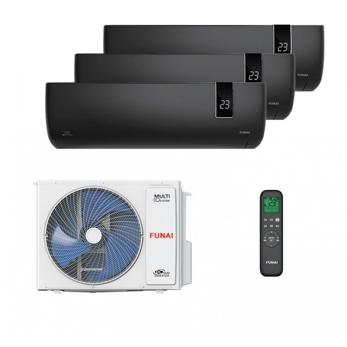 Комплектация оборудования: Мульти сплит-система Funai на 3 комнаты (25+25+25 кв.м.) серия BUSHIDO является флагманом среди линейки мульти сплит-систем Funai. Модель получила эстетичный матово черный цвет, тихий мотор вентилятора выдает минимальный шум в 19 дБ. Все внутренние блоки мульти сплит-систем Funai оснащены USB разъемом для подключения опционального модуля Wi-Fi.