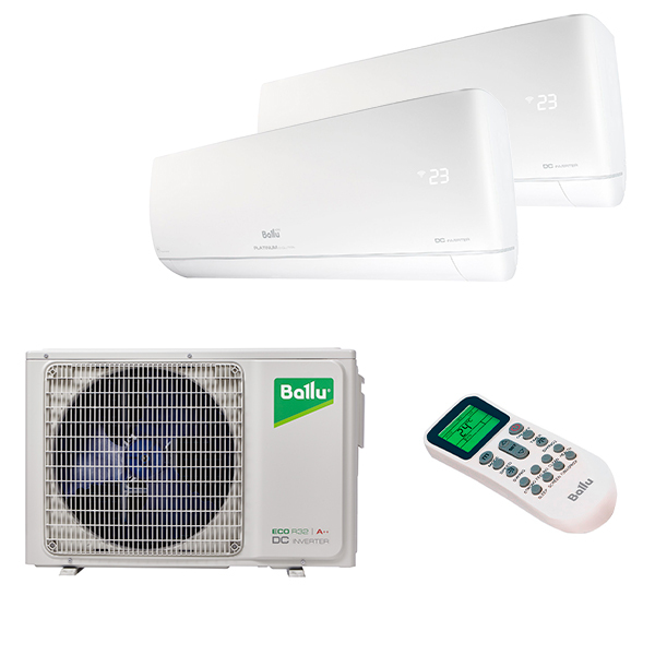 Идеальный вариант для охлаждения и обогрева нескольких комнат одновременно – мульти сплит система на 2 комнаты Ballu BSUI-FM/in-09HN8/EU + BSUI-FM/in-12HN8/EU / BA2OI-FM/out-18HN8/EU. Подходит для площади до 60 кв.м. Каждый из кондиционеров управляется с помощью индивидуального беспроводного пульта. Настенные блоки выглядят очень стильно и выпускаются в двух цветах: белом и чёрном.