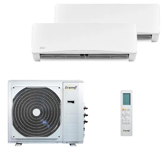 Для качественного охлаждения помещения можно использовать не только традиционные кондиционеры, а так же мульти сплит систему Eurohoff EMMULT - 09 x 2 / EMMULT - 18/2. Она рассчитана на 2 помещения с общей площадью до 54 кв.м. Каждый из внутренних блоков управляется отдельно с пульта.