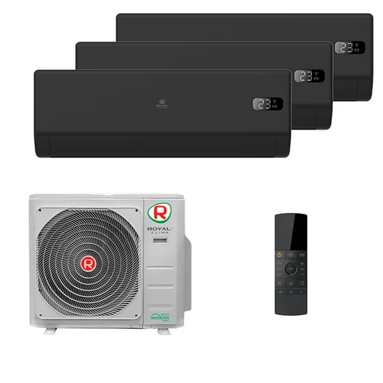 В многих современных квартирах уже предусмотрено и отведено место для установки внешних блоков кондиционеров. И чаще всего чтобы снизить уровень стороннего шума или сохранить презентабельность фасада самого здания, застройщики предполагают установку только 1 внешнего блока, а внутри квартиры есть возможность установить 2 и более внутренних. Так например комплект Royal Clima RCI-VT09HN x 3 / 3RMN-21HN/OUT из серии Venturo Nero подойдет для 3 комнат с площадью до 20 кв.м.