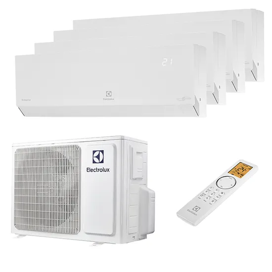 Стильный дизайн в белом цвете по-настоящему подчеркнет и сделаем необычным интерьер любой квартиры или офиса. Мульти сплит система на 4 комнаты Electrolux EACS/I-09 HEN FMI/N8_ERP_WT/in x 4 / EACO/I-28 FMI-4/N8_ERP отличается уникальной системой фильтрации со встроенным генератором холодной плазмы, дополнительными фильтрами тонкой очистки и ультра-фиолетовым очистителем. Подходит для общей площади до 80 кв.м.