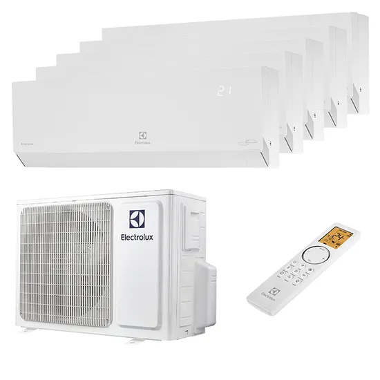 Стильный дизайн в белом цвете по-настоящему подчеркнет и сделаем необычным интерьер любой квартиры или офиса. Мульти сплит система на 5 комнат Electrolux EACS/I-09 HEN FMI/N8_ERP_WT/in x 5 / EACO/I-42 FMI-5/N8_ERP отличается уникальной системой фильтрации со встроенным генератором холодной плазмы, дополнительными фильтрами тонкой очистки и ультра-фиолетовым очистителем. Подходит для общей площади до 135 кв.м.