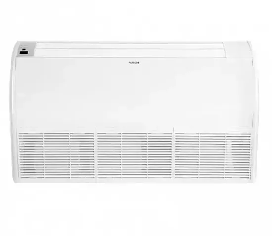 Внутренние блоки Daichi напольно-потолочного типа имеют одинаковую толщину всего 235 мм. Подключение внутреннего и наружного блока возможно с трех сторон, что увеличивает вариативность монтажа. Возможна раздача воздуха вдоль потолка на большое расстояние.