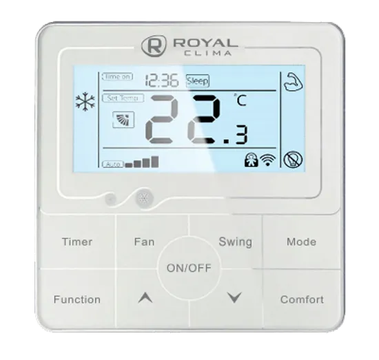 Проводной пульт управления для высоконапорных полупромышленных сплит-систем серий COMPETENZA имеет легкий и удобный интерфейс, позволяет настраивать все параметры работы сплит-систем.