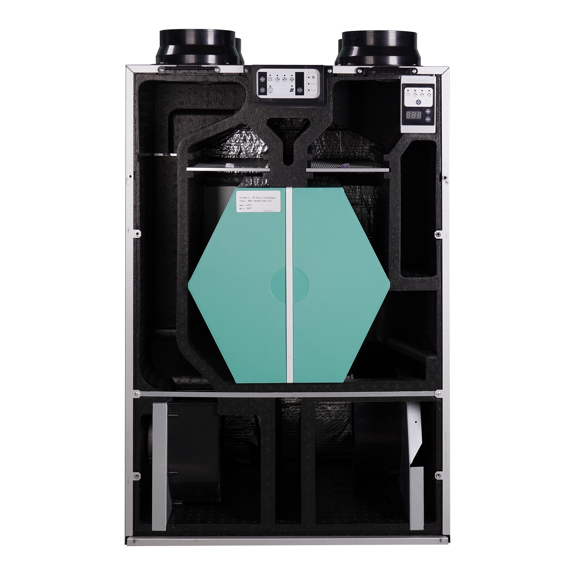 Стандартно установки комплектуются приточным и вытяжным вентиляторами, приточным и вытяжным фильтрами, пластинчатым рекуператором. Инновационный тип рекуператора позволяет подогревать и увлажнять приточный воздух, при этом специальная мембрана рекуператора переносит из вытяжного воздуха только молекулы воды, оставляя в нем все загрязнения.