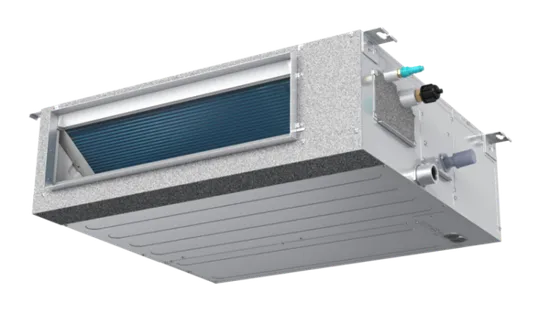 Супертонкий корпус внутреннего канального блока (от 190 мм) расширяет возможности его применения, так как не требует значительного понижения высоты потолка при его размещении. Встроенный дренажный поддон из формованного полистирола не подвержен коррозии.